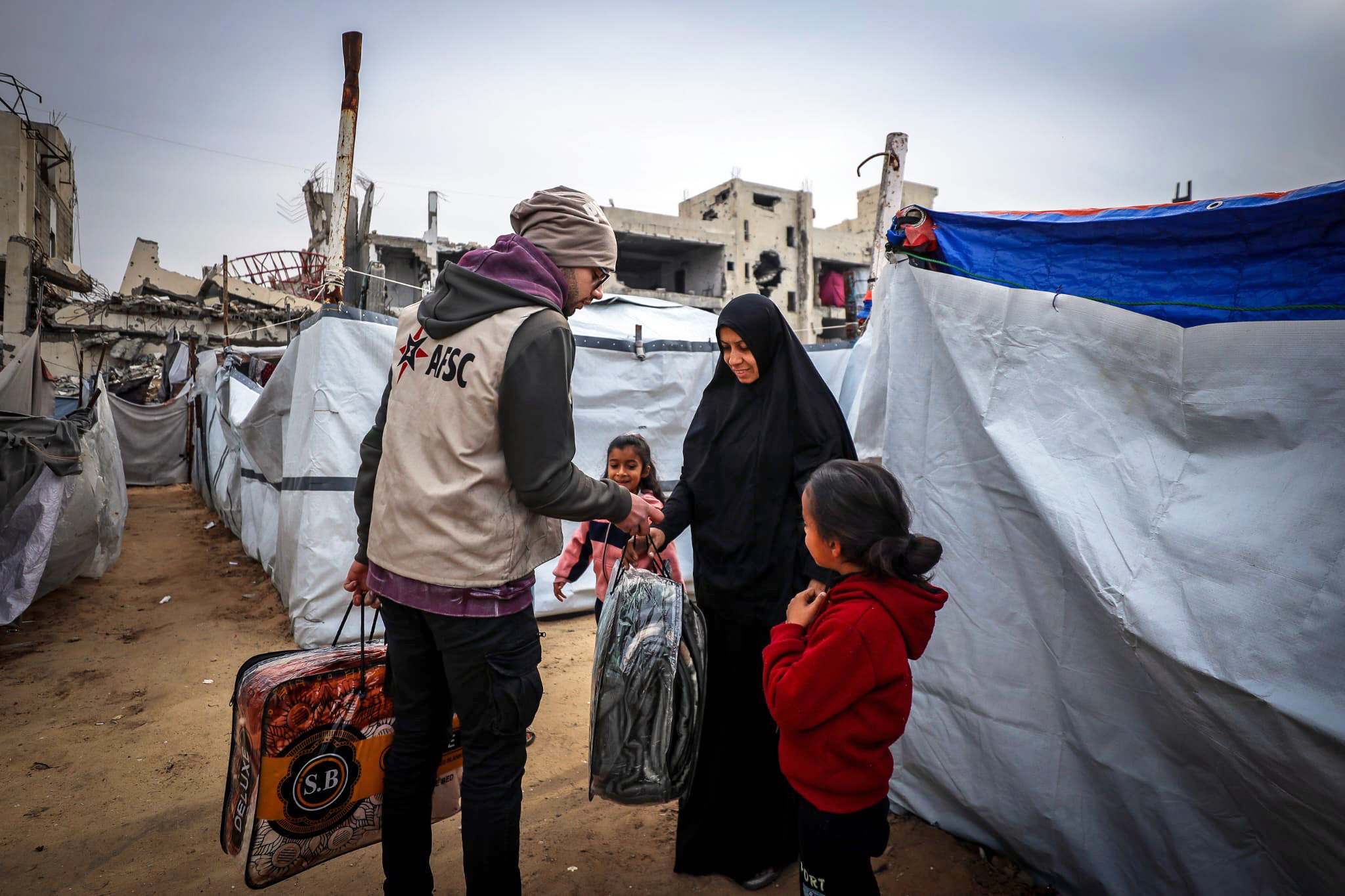 AFSC remains steadfast in supporting Palestinians through this crisis. Supporters like you make our work possible. With your help, we have provided food, water, hygiene kits, and other lifesaving aid to more than 1 million displaced Palestinians.