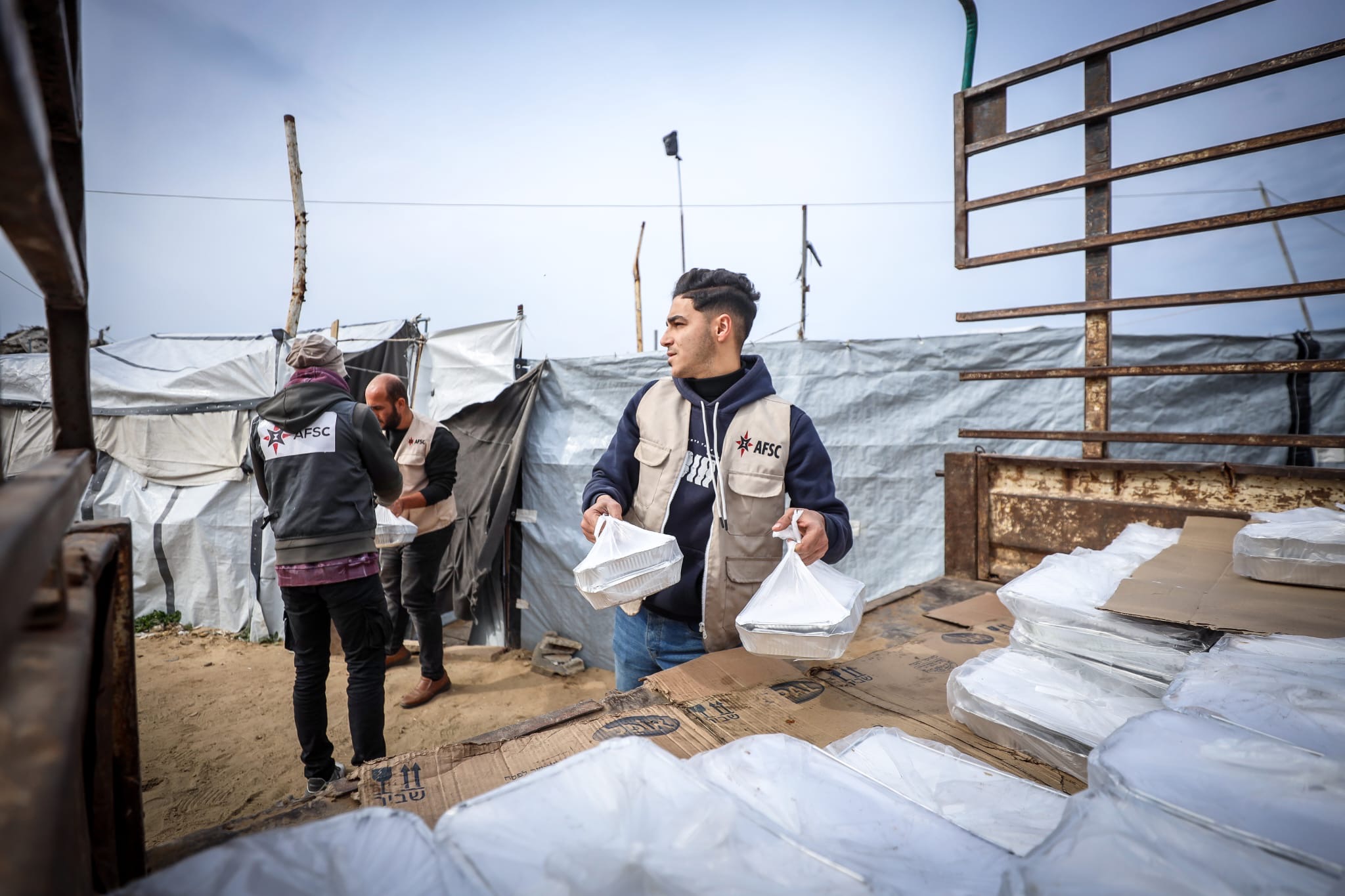 Last month, AFSC’s team in Gaza provided hot meals, fresh vegetables, and winter blankets to displaced Palestinians. Photo: Amjad Al Fayoumi