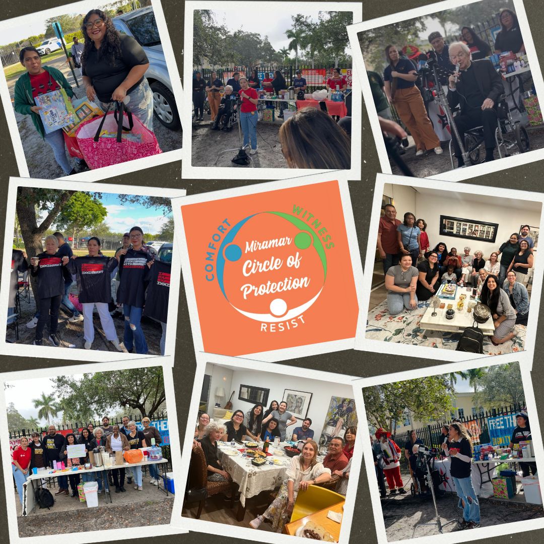 On December 17, International Migrants’ Day, the Miramar Circle of Protection hosted an interfaith vigil outside the ICE-ERO Center, bringing together faith leaders, impacted families, and community members to honor migrants’ dignity and denounce harmful immigration enforcement practices, including transfers to the Everglades detention site known as “Alligator Alcatraz” and the use of 287(g) agreements.