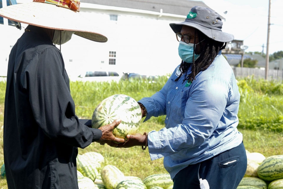 Peace by Piece, in partnership with Hollygrove Neighbors and Oko Vue Produce Company, hosted a food giveaway for the neighborhood in July to benefit 273 individuals. A Hollygrove Neighbors Board Member secured a sponsor who purchased 4,000 pounds of produce from local Black farmers. Distancing socially at the Hollygrove Community Garden, volunteers from each of the organizations handed out personal protective equipment; fresh produce, including squash, cucumbers, and watermelon; and hot fish plates provided by Peace by Piece and neighbors who offered to prepare sides for the meals. Staff and volunteers delivered produce and meals to seniors in the neighborhood and large households who placed orders during the giveaway.  We’re planning to host at least two more food giveaways before the end of the year.
