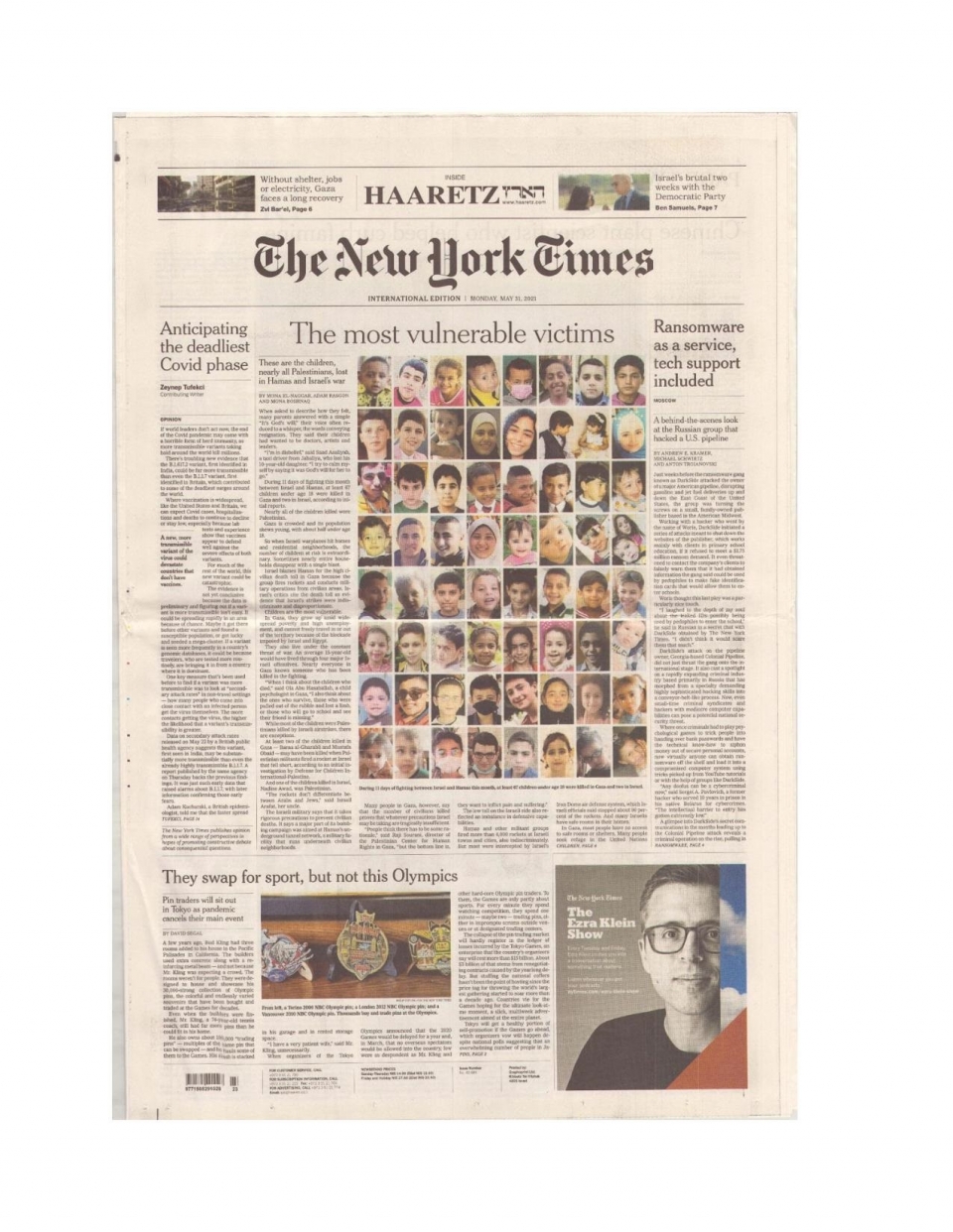 Soon after, The Times ran a frontpage story of its international edition with the headline “The most vulnerable victims.” It included photos of 64 Palestinian children killed in the attacks. This article prompted many people to see, perhaps for the first time, the young faces of Palestinian lives lost to military assaults.